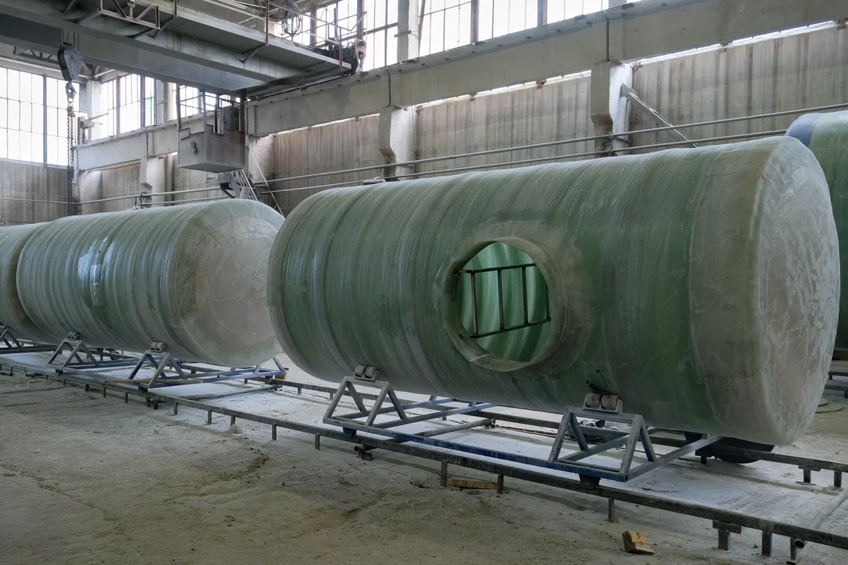 ГКНС-ТЕХ с горизонтальным корпусом представляет собой емкость из стеклопластика с колодцами обслуживания, установленными внутрь насосами, обвязкой из нержавеющей стали и дополнительным оборудованием.